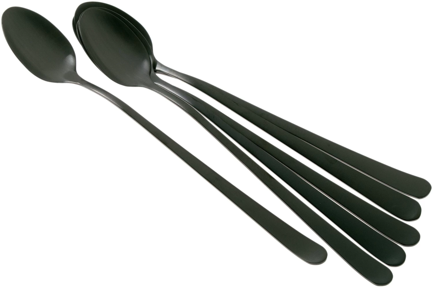 Haz una declaración con estas misteriosas cucharillas negras. Fabricadas en acero inoxidable 18/0 con un fino revestimiento de titanio PVD (Physical Vapor Deposition).