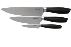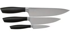 El Juego de cuchillos Böker Core Professional de 3 piezas es, como su nombre ya indica, un juego de cuchillos enfocado a la cocina profesional. La facilidad de uso, la funcionalidad y la resistencia son los factores más importantes para un buen cuchillo de cocina. El juego contiene un gran cuchillo de chef para todas las tareas de corte importantes en la cocina. El cuchillo de chef más pequeño es ideal para las tareas en las que se necesita un poco más de control. El pequeño cuchillo universal es ideal para las tareas pequeñas. Desde cortar ajos hasta pelar verduras. Los cuchillos están muy bien guardados en una tela bonita, pero igual de utilizable.