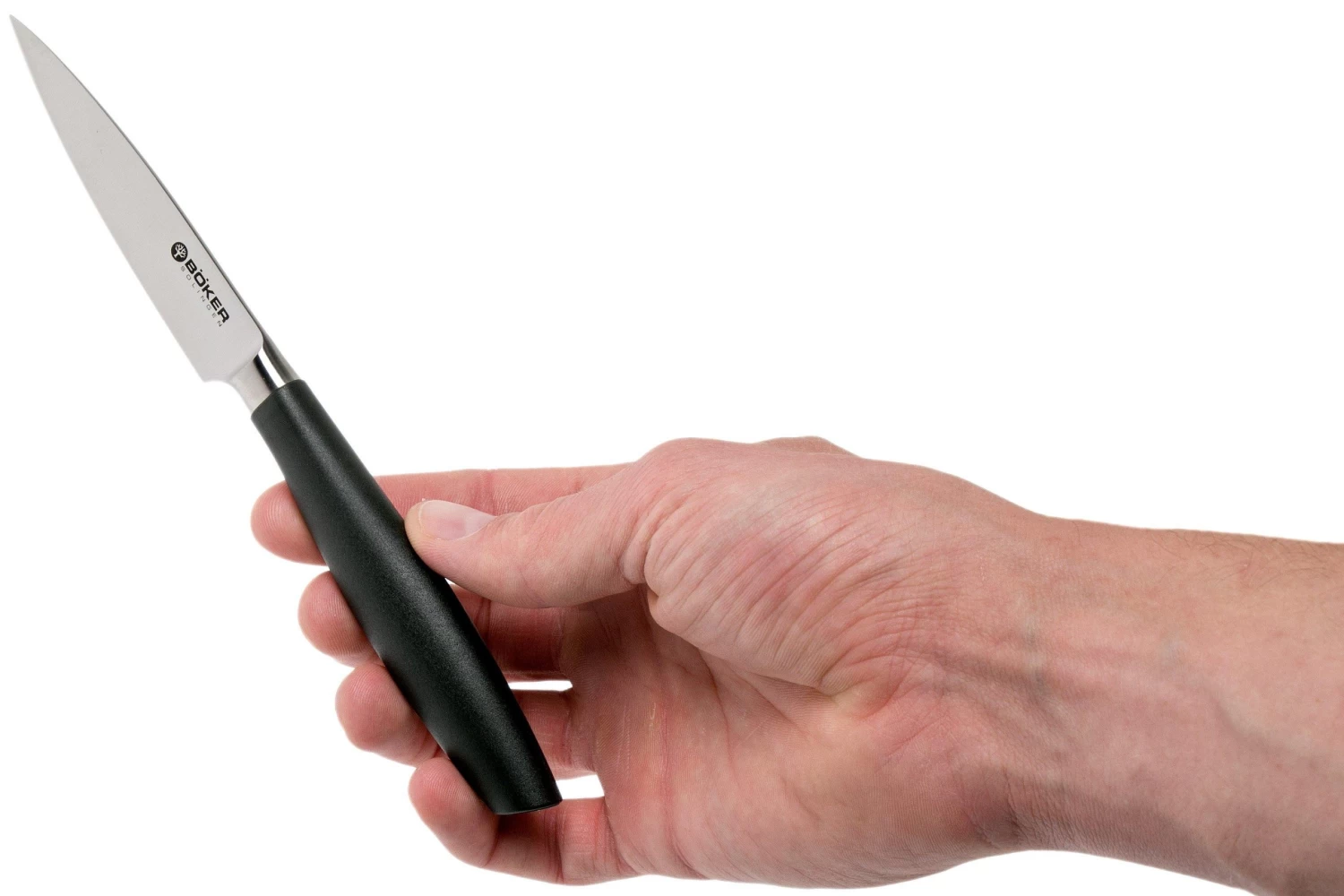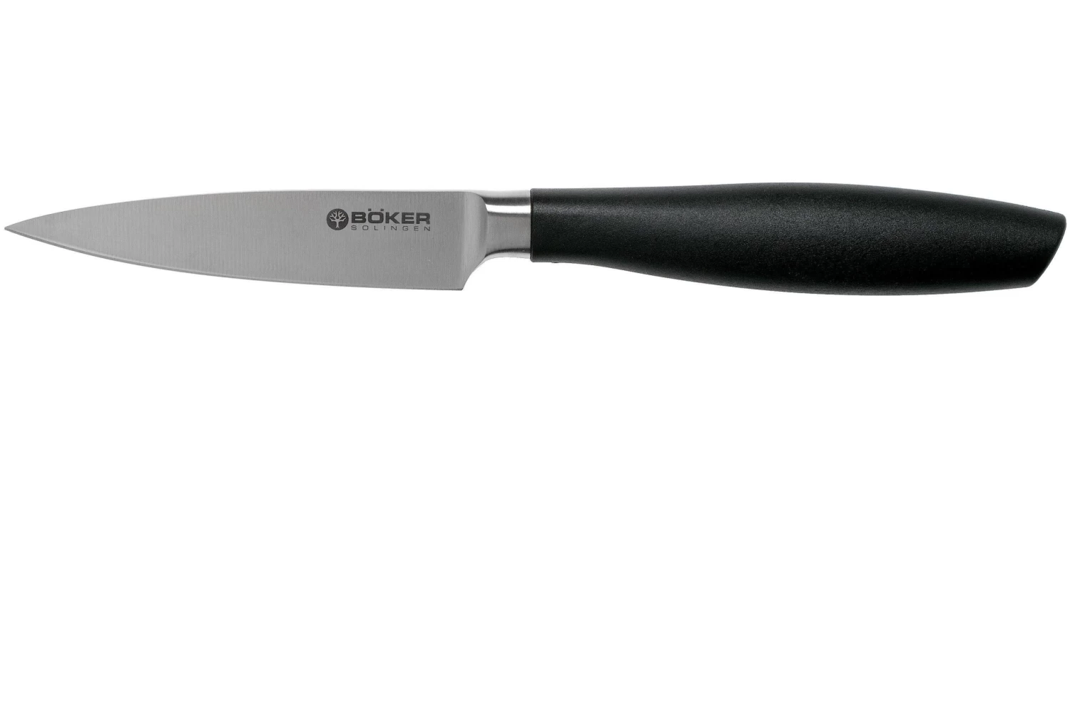 El cuchillo multiusos Böker Core Professional 9 cm – BO130810 es perfecto para todas las pequeñas tareas en la cocina. El cuchillo compacto tiene una longitud de hoja de 9 cm. Desde pelar verduras hasta picar finamente el ajo, todo es posible con el práctico y elegante cuchillo multiusos.