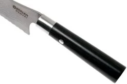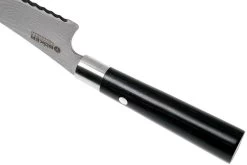 Este cuchillo de pan Böker Damast Black tiene las típicas estrías y la larga hoja que se espera de un cuchillo de pan de calidad. Obviamente, es ideal para cortar el pan, pero también puede utilizarse para productos con un exterior duro, como la piña o la col.