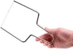 Esta lira Boska para roquefort M es una herramienta profesional para cortar quesos blandos como el roquefort, el brie y el Port Salut. Esta versión mediana está reforzada con un cable de 14,5 cm. Esto es muy útil para cortar quesos frescos como la mozzarella y los rollos de queso como por ejemplo los de hierbas. ¡Una forma única y divertida de cortar el queso!