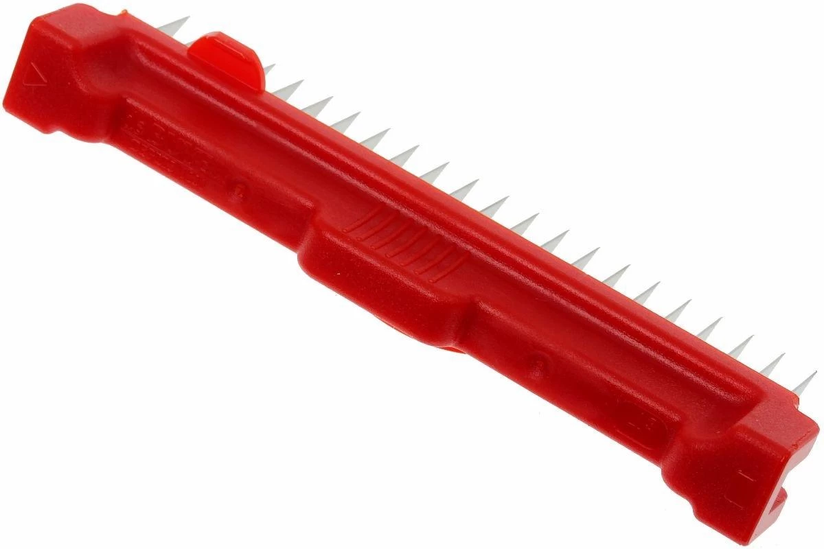 Este cuchillo juliana de Buyer puede utilizarse como recambio o pieza de repuesto para la mandolina Ultra de Buyer. El espacio entre los bordes de corte es de 4 mm. El cuchillo está realzado con un bonito color rojo.