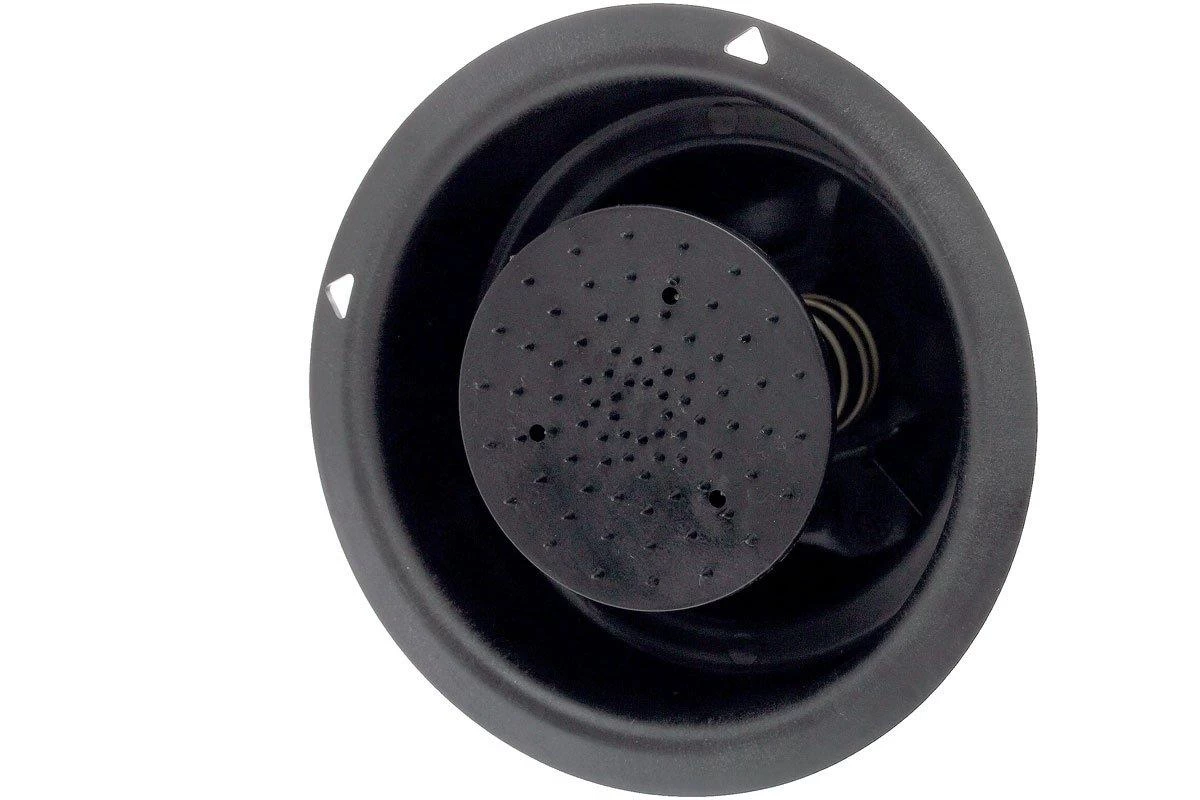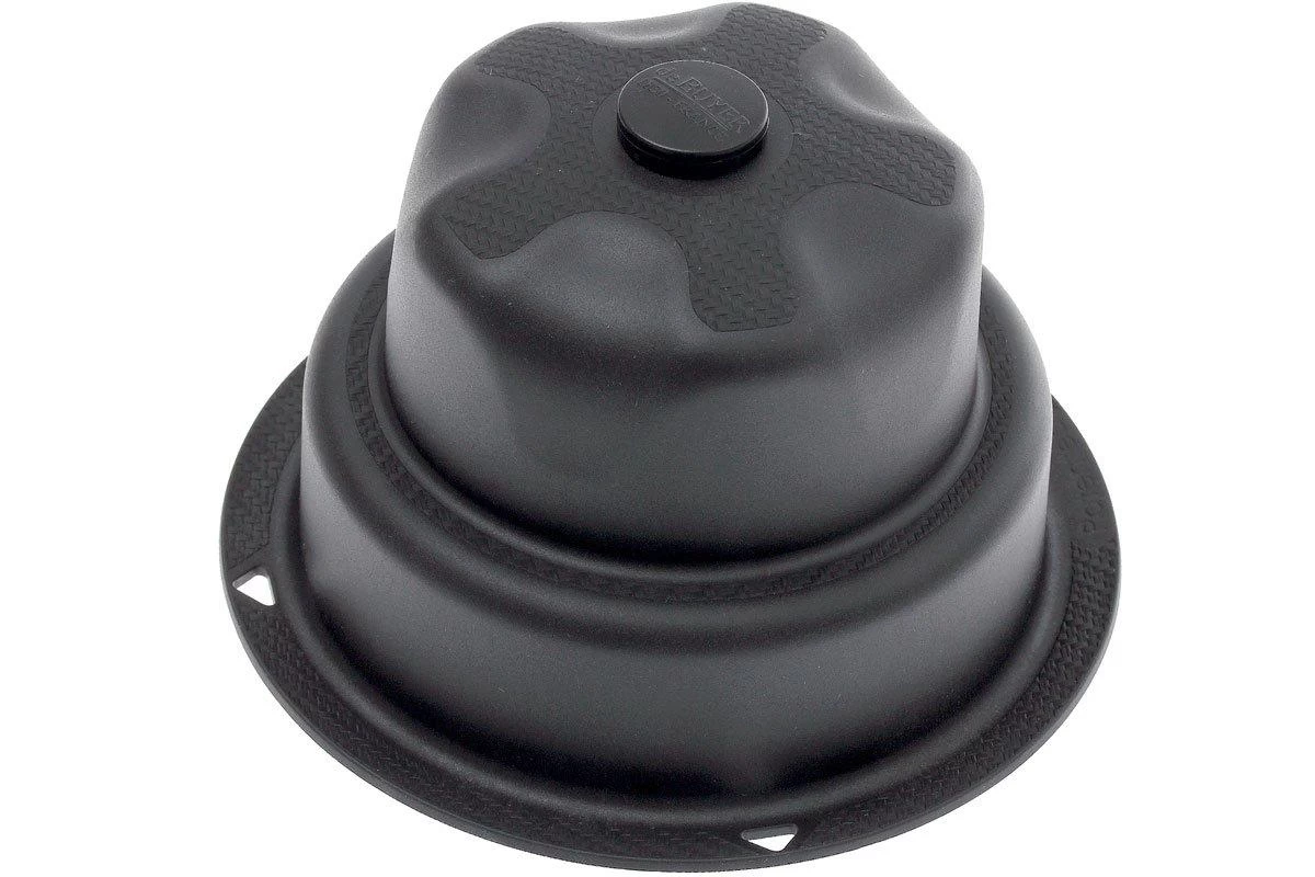 El pulsador de Buyer puede utilizarse para cortar con seguridad frutas y verduras en la mandolina Vantage. El pulsador consiste en un sombrero de plástico que tiene clavijas en la parte inferior para sujetar el producto. Hay un pequeño muelle detrás de los pasadores para mantener una presión nivelada sobre el producto y mantener un resultado idéntico.