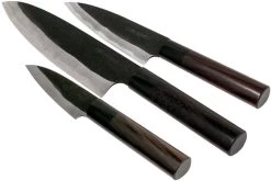 Juego de cuchillos de 3 piezas de la colección Eden Kanso Aogami. ¡Los cuchillos más afilados de nuestra gama! Hoja fina de acero al carbono muy resistente (Aogami # 2) para unas propiedades de corte perfectas.