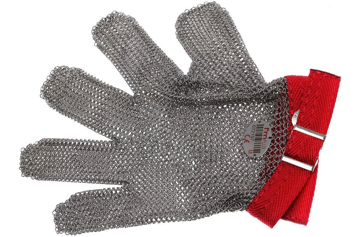 Este guante para ostras Niroflex reduce en gran medida el riesgo de lesiones al abrir las ostras. La estructura de los anillos de acero trenzado procede directamente de la cota de malla, pero obviamente es mucho más ligera y fina. Puedes ajustar la longitud de la banda sólida alrededor de la muñeca.