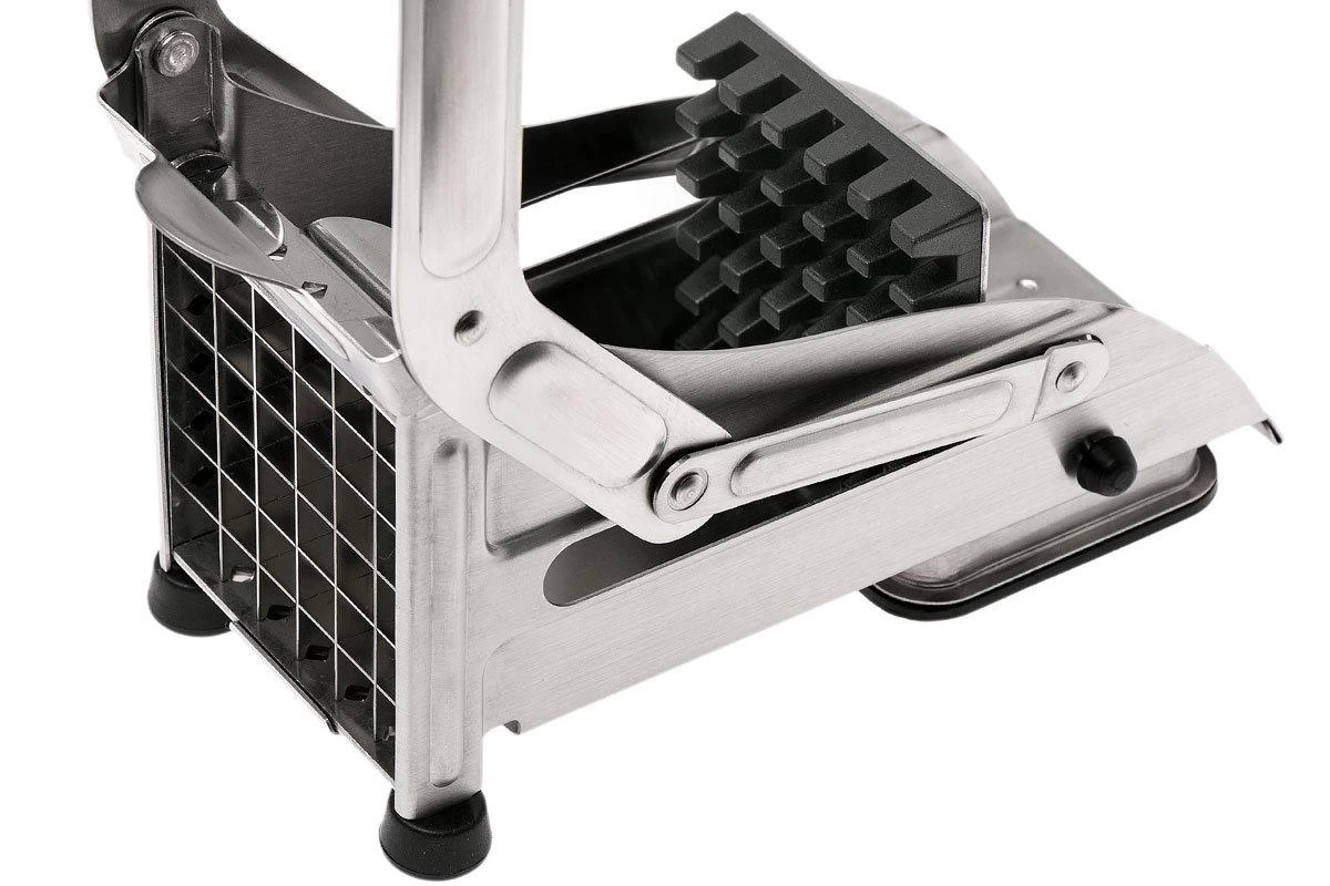 Con el cortador de varillas GEFU puedes cortar fácilmente tiras de 12×12 mm. Además de cortar patatas, también puedes utilizar esta herramienta para cortar zanahorias, encurtidos o pepinos. Con el fuerte pie de succión de vacío puedes fijar el cortador a la encimera de tu cocina. En cualquier caso, te recomendamos que sujetes el cortador mientras cortas. Las afiladas hojas cortarán tiras de 12 x 12 mm. La rejilla de corte y el expulsor pueden extraerse para que puedas limpiar fácilmente la cortadora. Todas las piezas son aptas para el lavavajillas.
