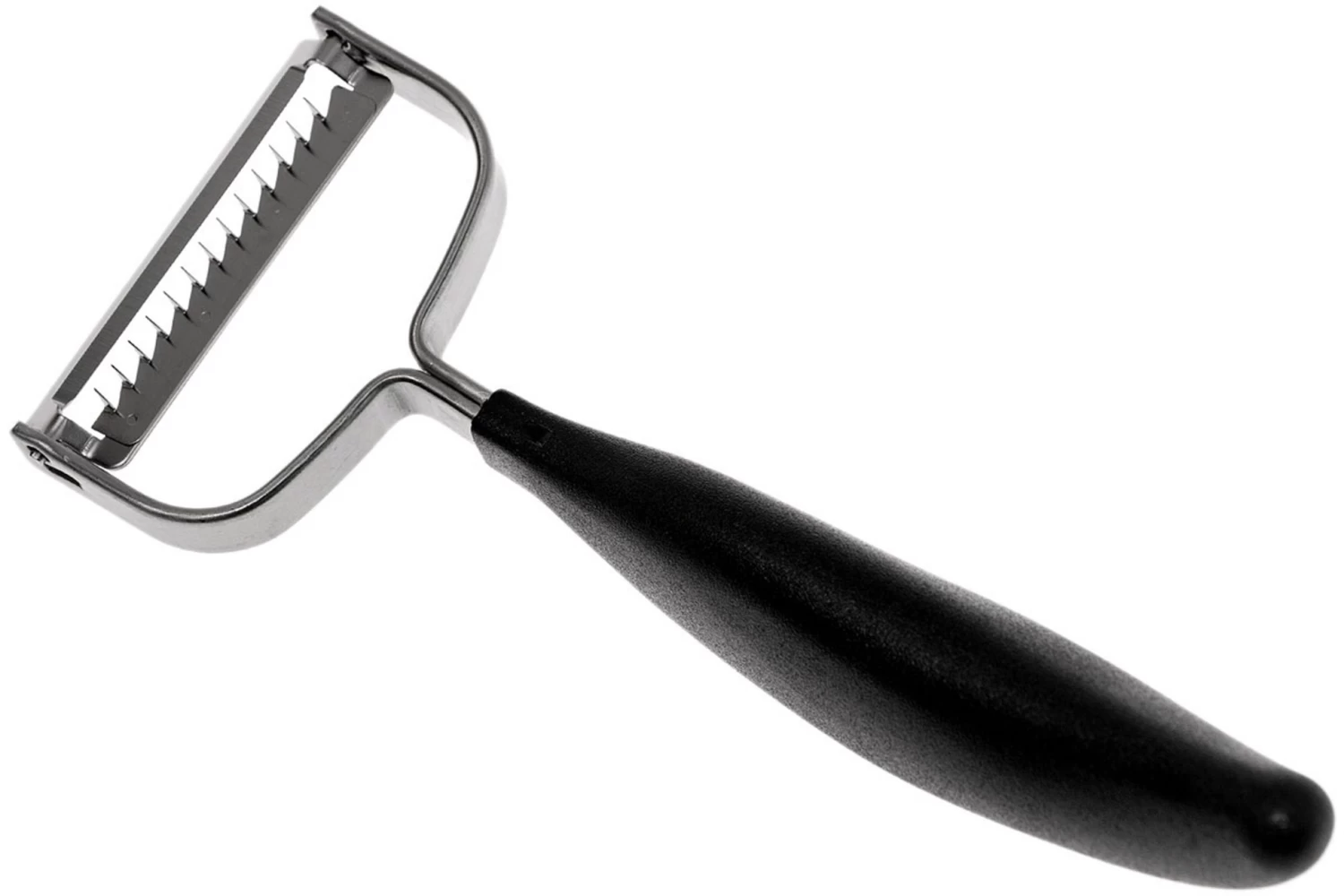 Con el pelador en juliana Striscia podrás pelar de forma rápida, segura y sencilla verduras y frutas largas como pepinos, calabacines y zanahorias. Consigue hermosas tiras largas de verduras o frutas para, por ejemplo, una ensalada o como guarnición. La estrecha abertura garantiza que sólo se extraiga un fino trozo de piel. La hoja inferior es fina para garantizar que los restos de comida se peguen poco a la hoja. Además, con este utensilio se pueden cortar fácilmente limones o limas. La hoja está hecha de acero inoxidable. El mango ergonómico se funde perfectamente con el resto de este utensilio de cocina. Muy higiénico.