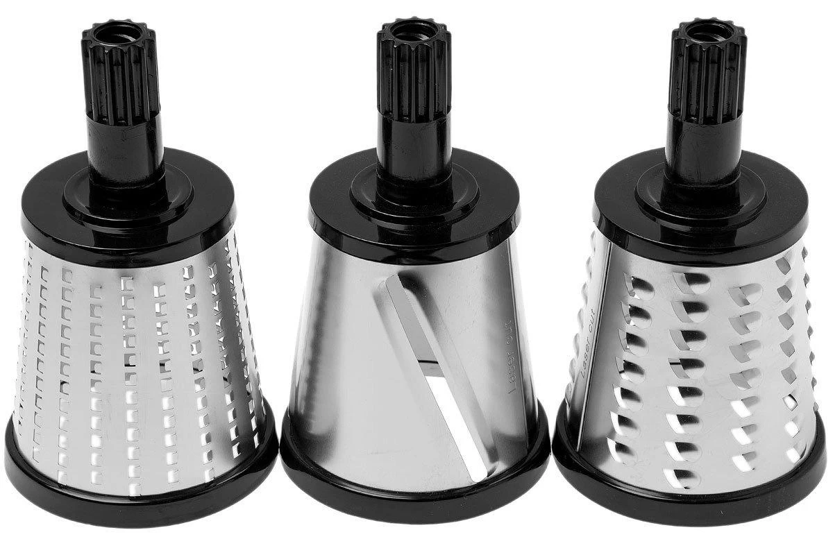 Con este rallador giratorio de GEFU Transforma podrás rallar fácilmente verduras, frutas y frutos secos. El rallador viene con tres cilindros diferentes. ‘LASER CUT’, por lo tanto es muy afilado. Podrás obtener virutas finas, ralladuras gruesas o rodajas finas.