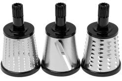 Este accesorio rallador rotativo GEFU Transforma ha sido diseñado específicamente para la picadora de carne GEFU Transforma. Con este juego podrás transformar fácilmente tu picadora de carne en un rallador giratorio. Para rallar verduras, frutas, frutos secos, chocolate y queso. El juego de accesorios se compone de un empujador y tres tambores diferentes. Estos son ‘LASER CUT’ así que extra afilados. Para copos finos, rejillas gruesas o rodajas finas.