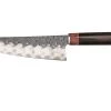 Santoku de la colección Alpha de Güde. Este santoku tiene un filo de granton, que está pensado para evitar que las rodajas finas de comida se peguen a la hoja.