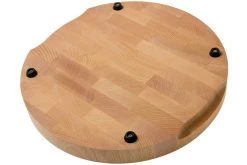 La Il Cucinino tabla de cortar redonda de grano final es una tabla de cortar gruesa hecha de cubos de madera de haya. Como tal, tiene un patrón de grano impresionante y único. La tabla de cortar está provista de cuatro pies de goma para que se mantenga en su sitio en la encimera y de dos asas para sujetarla. La tabla de cortar tiene un diámetro de 35 cm y una altura de 4 cm.