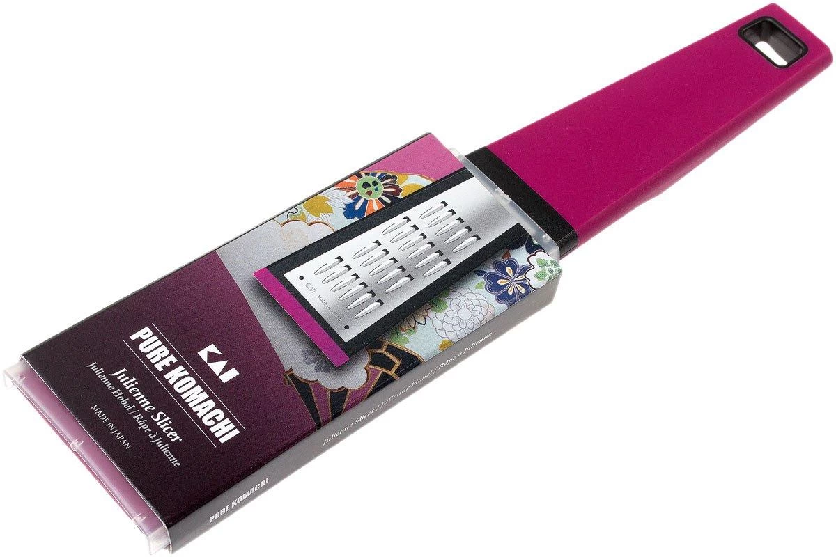 Este cortador de juliana Kai Pure Komachi es perfecto para cortar patatas, calabacines y pepinillos. Este cortador está mejorado con una hoja sostenible y afilada hecha de acero inoxidable SUS304. Con ella podrás cortar productos sin esfuerzo. Este cortador es muy preciso sin aplastar los ingredientes. De este modo, conservas el aroma de los ingredientes que quieres rallar. Gracias al mango ergonómico de tacto suave, el cortador se siente agradable y estable en la mano.
