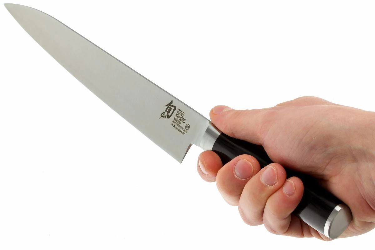 Los cuchillos de cocina de la colección Kai Shun Pro Sho tienen una hoja de acero VG10 endurecida hasta un valor extremadamente alto de 61 HRC. Combinado con el modo especial de afilado en el que una cara se afila y la otra se hace cóncava, estos cuchillos son un placer para trabajar. Son realmente afilados. Ergonómicamente hablando, tienen el conocido nivel de Kai Shun. Los mangos asimétricos de madera de pakka negra laminada se adaptan perfectamente a la mano.