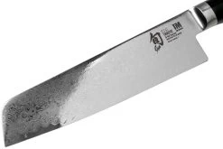 El Kai Shun Tim Mälzer santoku es ideal para rebanar y cortar finamente bloques de carne, pescado y verduras. La forma rectangular te permite «mecer» la hoja pero también cortar con precisión tus ingredientes.