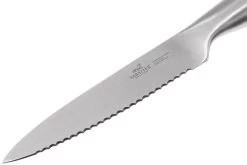 El cuchillo universal Fuso Nitro+ de Lion Sabatier (dentado) es perfecto para cortar alimentos pequeños con una piel relativamente dura y un interior blando. Piensa en cortar tomates y salchichas o cortar una naranja por la mitad.