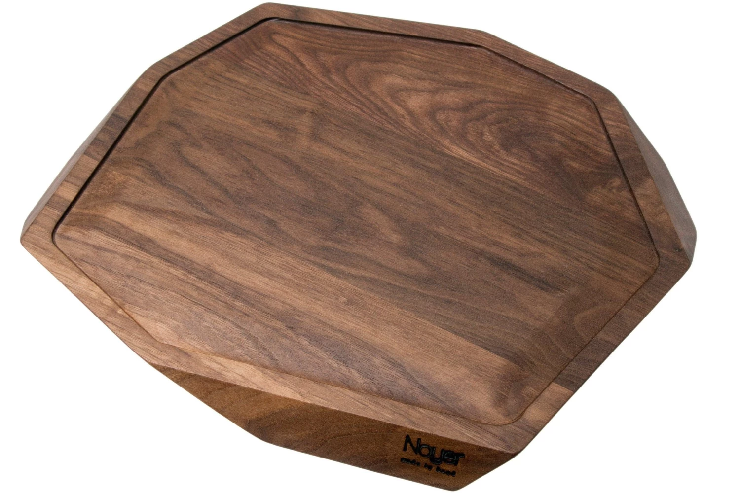 La tabla de cortar de madera de nogal de Noyer con ranura es a la vez funcional y estética. Una mezcla entre una tabla de cortar y un elemento decorativo en la cocina. La tabla de cortar tiene una ranura que sigue la forma de la tabla. La ranura garantiza que los jugos de la carne, la fruta y las verduras permanezcan en la tabla de cortar, manteniendo limpias las encimeras.