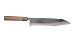 El Sakai Takayuki Blue 2 Steel Japanese Style 01235 deba 15 cm es un pequeño pero robusto cuchillo de cocina japonés. El deba fue diseñado originalmente para filetear y preparar carne y pescado. La hoja es más gruesa que la de un cuchillo de cocina medio, lo que te permite cortar huesos pequeños, ligamentos y tendones sin dañar el filo del cuchillo. Este cuchillo está afilado por un lado, mientras que el otro está ahuecado. Esto asegura que la carne o el pescado no se pegue y se caiga de la hoja con facilidad mientras estás cortando.