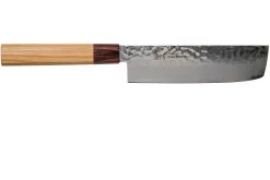 Este nakiri de la colección Vg10 Damascus Hammer WA de 33 capas de Sakai Takayuki es un cuchillo vegetal japonés con una longitud de hoja de 16 cm. Perfecto para cortar con precisión las verduras.