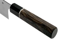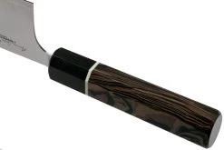 Nakiri significa «cortador de verduras». Su forma única y rectangular hace que este cuchillo sea perfecto para cortar todo tipo de verduras. La punta del cuchillo es ligeramente redondeada para garantizar que también puede cortar rápidamente verduras en ángulo. Además, podrás cortar hierbas en porciones minúsculas con gran facilidad.
