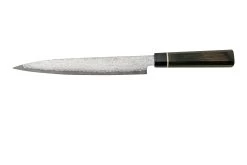 El cuchillo de sashimi Suncraft Senzo Black BD-07 de 21 cm es ideal para cortar pescado para sushi. La hoja está afilada por un lado, lo que le permite cortar finas lonchas de carne y pescado a gran velocidad.