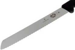 Este cuchillo de pan Victorinox Fibrox, 21 cm puede utilizarse para cortar todo tipo de pan. De la corteza dura a la blanda, de los bollos blandos a las baguettes. ¿Pero sabías que un cuchillo de pan también puede usarse para cortar pasteles y tartas? ¿Y que un cuchillo de pan puede cortar fácilmente verduras y frutas duras, como melones, calabazas y apio? Toda cocina necesita un buen cuchillo para el pan, y este cuchillo es un gran ejemplo.