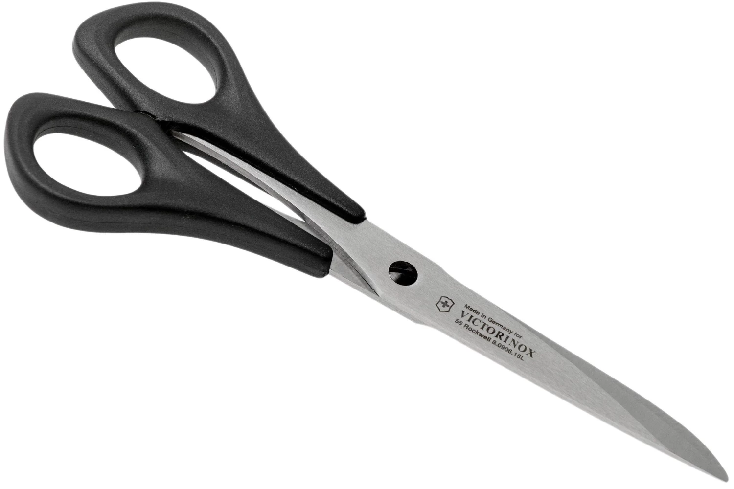 Las tijeras domésticas de Victorinox de acero inoxidable de 16 cm para zurdos son unas tijeras universales que pueden utilizarse para muchas tareas diferentes. Corta las etiquetas de la ropa, abre los envases, corta el papel de regalo a medida o corta un poco de romero de tu jardÃn con estas prácticas tijeras de casa universales.