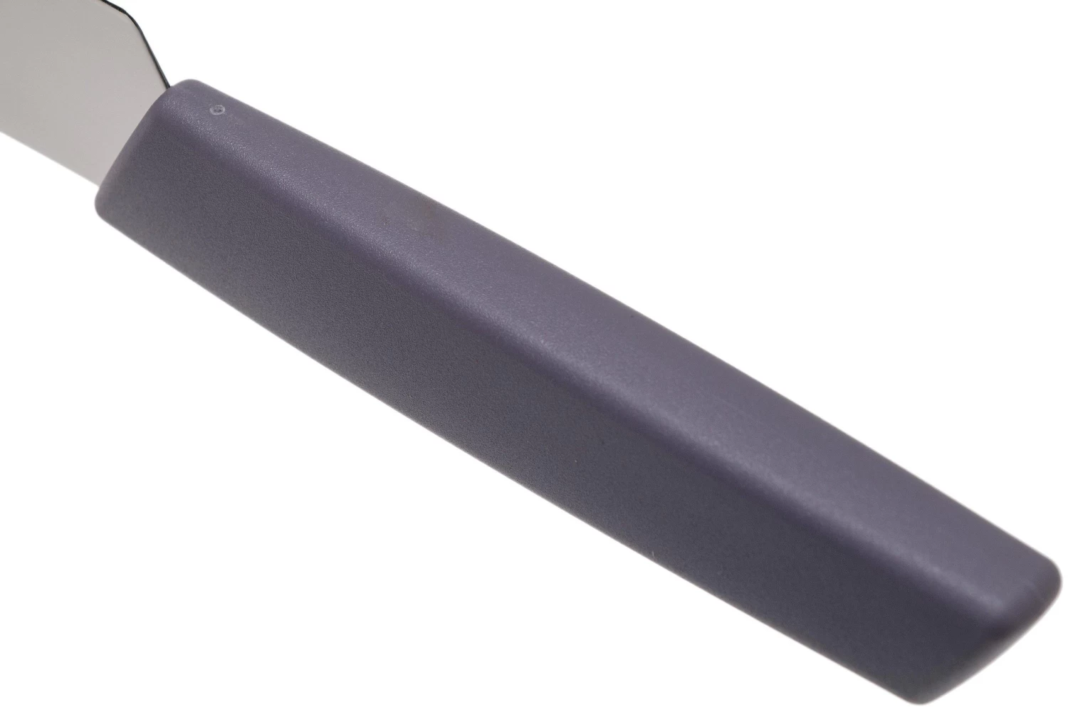 El cuchillo puntilla Victorinox Swiss Modern es un cuchillo pequeño y ligero para las tareas más detalladas en la cocina. Debido a su tamaño compacto, el cuchillo se siente muy bien en la mano. Mientras que un cuchillo de chef podría ser un poco demasiado grande, este cuchillo puntilla será definitivamente útil.