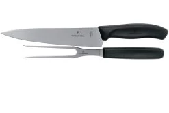 Este Juego de cuchillos para trinchar de 2 piezas Victorinox SwissClassic, negro es un set profesional y práctico para todo amante de la carne. Con este cuchillo para trinchar podrás cortar fácilmente los trozos de carne más finos y con el tenedor para carne podrás mantener la carne en su sitio mientras la cortas.
