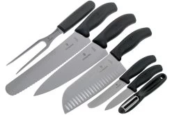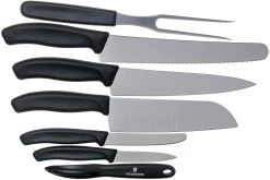 El Juego de cuchillos de cocina Victorinox SwissClassic de 7 piezas, negro en caja de regalo, es el regalo perfecto para cualquier persona a la que le guste cocinar. Desde pelar fácilmente las patatas con el pelador hasta cortar la carne en rodajas, con este tamaño tendrás todos los cuchillos que puedas necesitar en la cocina.