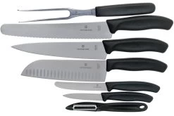 El Juego de cuchillos de cocina Victorinox SwissClassic de 7 piezas, negro en caja de regalo, es el regalo perfecto para cualquier persona a la que le guste cocinar. Desde pelar fácilmente las patatas con el pelador hasta cortar la carne en rodajas, con este tamaño tendrás todos los cuchillos que puedas necesitar en la cocina.