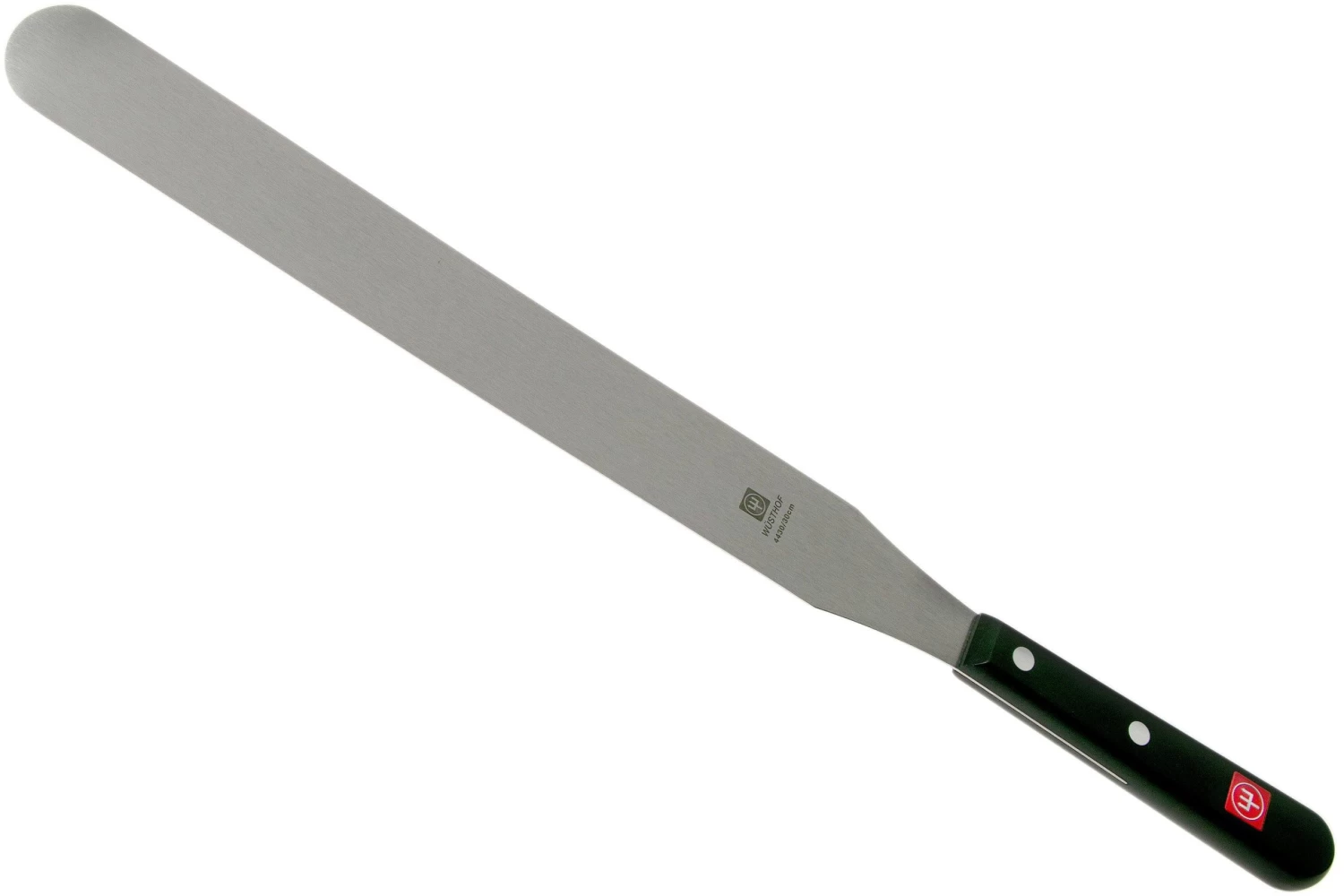 Esta espátula Gourmet Wüsthof de 30 cm es perfecta para extender coberturas o cremas, sacar pasteles del molde o dar la vuelta a las tortitas. Esta espátula es fina para que puedas pegarla fácilmente debajo de los productos horneados.