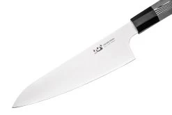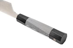 El cuchillo universal XinCare negro y blanco es un elegante cuchillo de cocina japonés. Este cuchillo universal tiene una longitud de hoja de 18 cm, por lo que parece un pequeño cuchillo de chef. Esto no significa que no sea un cuchillo increíblemente versátil. Gracias al filo y la punta, puedes utilizar este cuchillo para cortar finamente un diente de ajo o hierbas, pero también para cortar finamente trozos más grandes de carne y verduras.