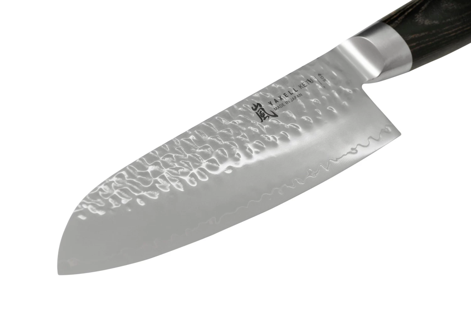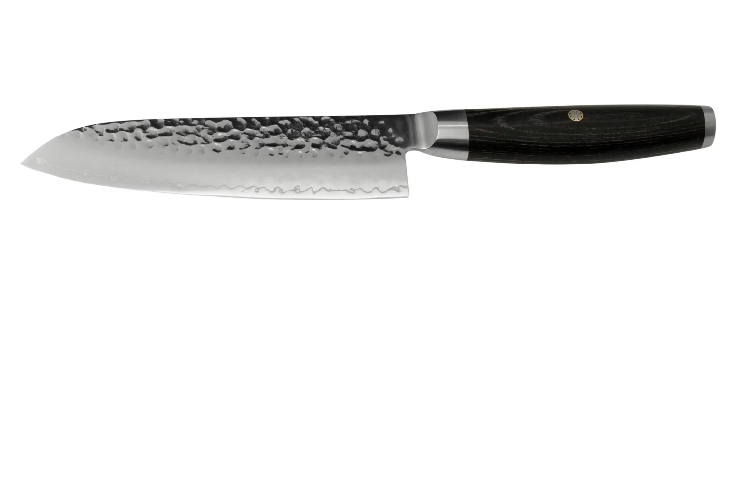 El Yaxell Ran santoku 16,5 cm es un práctico y elegante cuchillo de cocina japonés. Un santoku es la versión japonesa del cuchillo de chef. La hoja relativamente pequeña es perfecta para cortar finamente verduras, carne, pescado, cebolla, ajo y, por supuesto, diferentes tipos de hierbas.