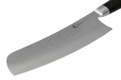 El Yaxell Ketu Konata es un cuchillo de cocina japonés de gran tamaño y estilo. La forma de la hoja es una combinación de santoku, nakiri y cuchillo de chef chino. Este cuchillo es muy adecuado para cortar verduras, carne y pescado. Atención: esto no es un cuchillo de carnicero. Evite la carne que aún tenga huesos en su interior. La cuchilla alta es perfecta para recoger trozos de verdura o carne.