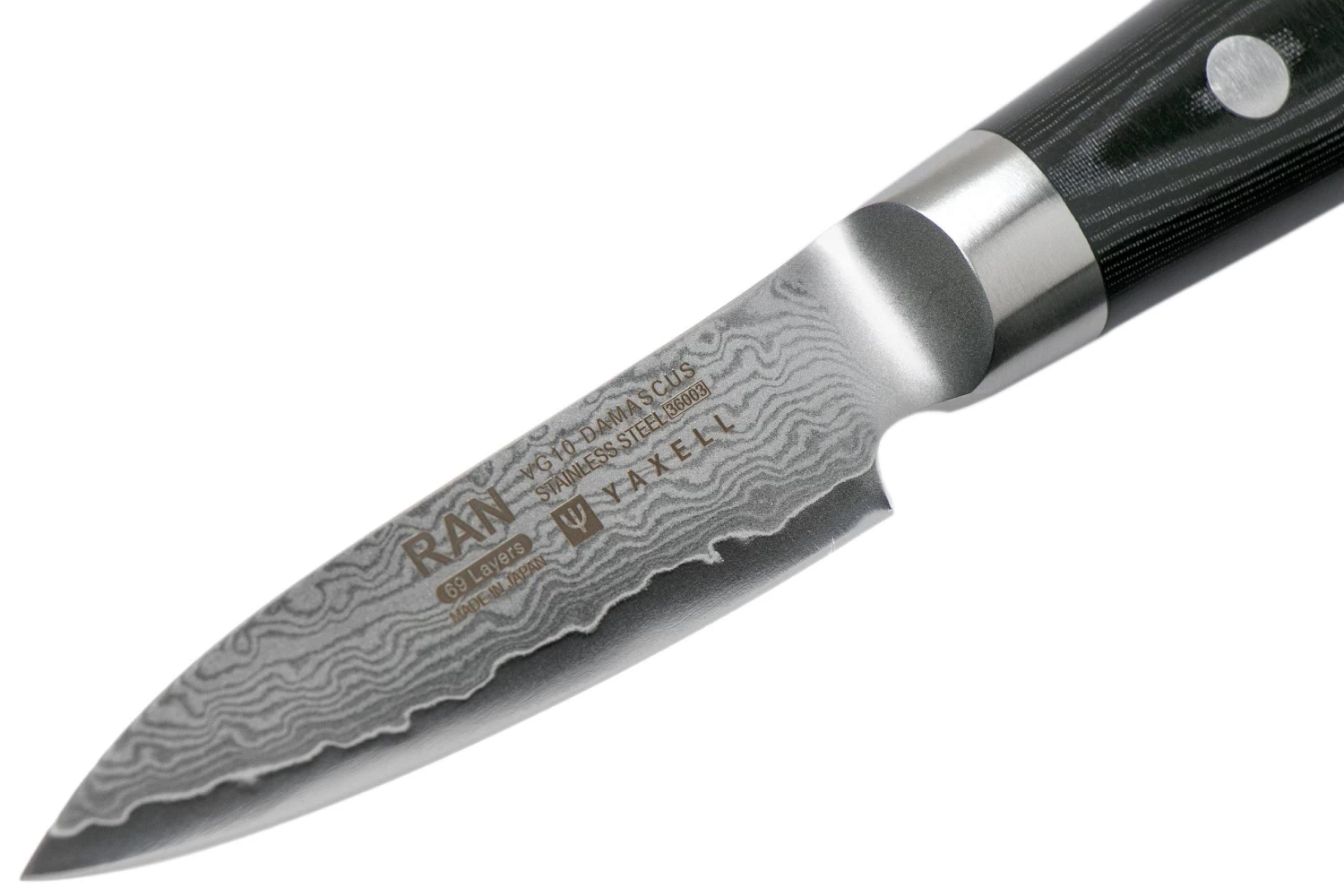 El cuchillo de pelar Ran de Yaxell es un práctico y elegante cuchillo de cocina japonés. El cuchillo es ligero. También por la pequeña hoja de 8 cm. Debido a su pequeña hoja y a su bajo peso, el cuchillo es muy fácil de usar. Perfecto para pelar fruta o verdura.