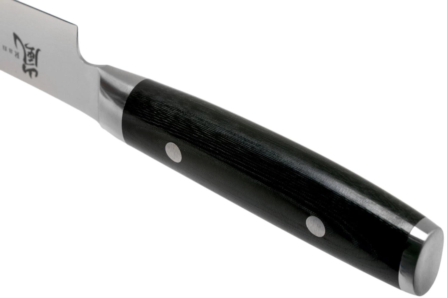 El cuchillo para trinchar Ran de Yaxell es un cuchillo para trinchar tradicional japonés con un gran diseño. La hoja de 18 cm de longitud permite realizar cortes largos. Las rebanadas no se pegan fácilmente a la hoja. Así se pueden cortar fácilmente rodajas finas sin romper la carne. La punta afilada es perfecta para tareas pequeñas y delicadas como la eliminación de tendones o grasa.