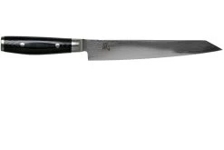 El Yaxell Tsuchimon nakiri es un cuchillo para verduras tradicional japonés con un toque moderno. El nakiri se encuentra en casi todas las cocinas japonesas. La hoja alta y cuadrada es ideal para cortar rápidamente verduras, frutas y hierbas. La hoja alta te permite guiar la hoja con seguridad a lo largo de tus nudillos mientras cortas. Sin duda, este es el cuchillo ideal para picar finamente zanahorias, pepinos, coles y cualquier otro tipo de verduras.