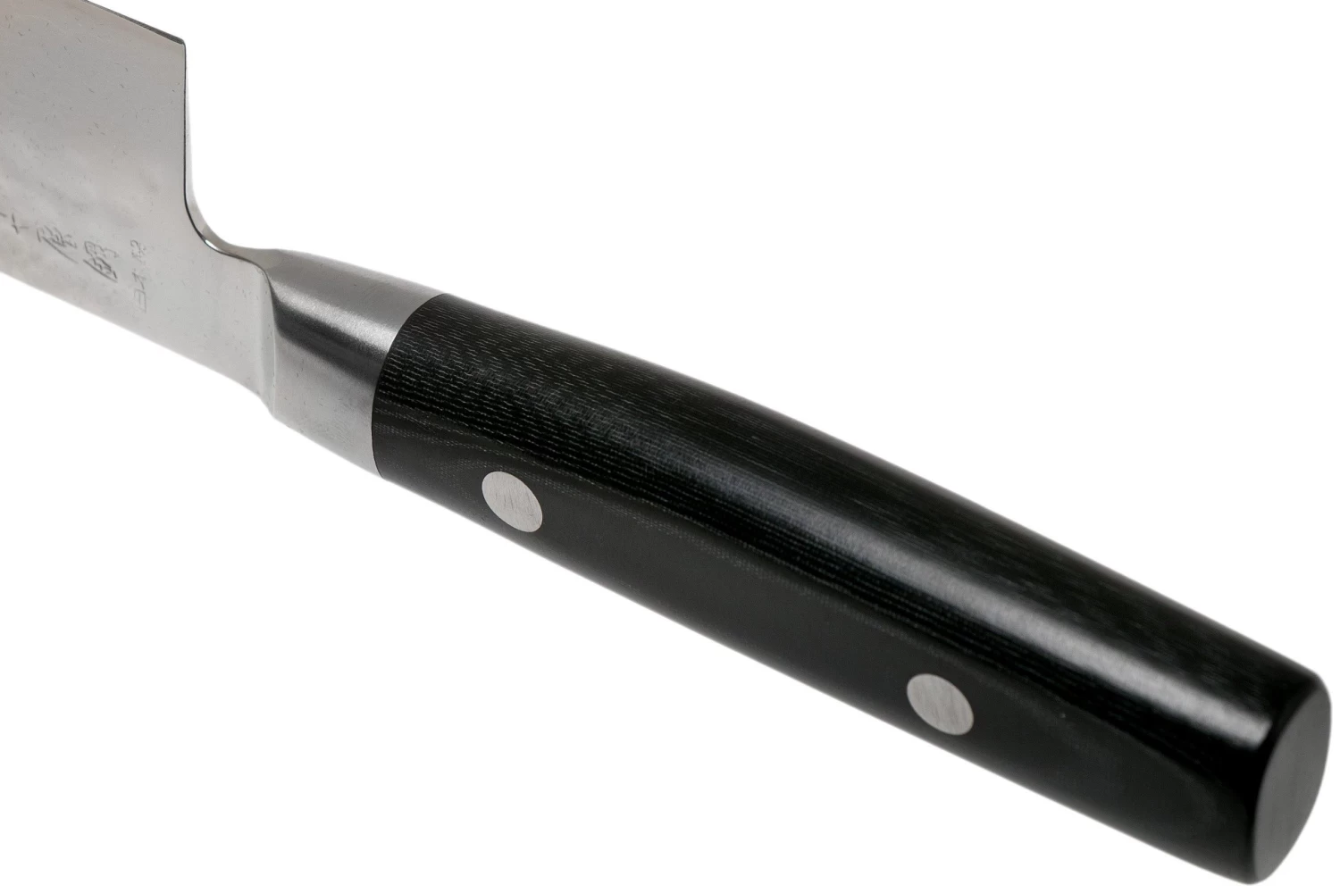 El Yaxell Zen santoku 12,5 cm es un práctico y elegante cuchillo de cocina japonés. Un Santoku es la versión japonesa del cuchillo de chef. La hoja pequeña es perfecta para cortar finamente verduras, carne, pescado, cebolla, ajo y, por supuesto, diferentes tipos de hierbas.